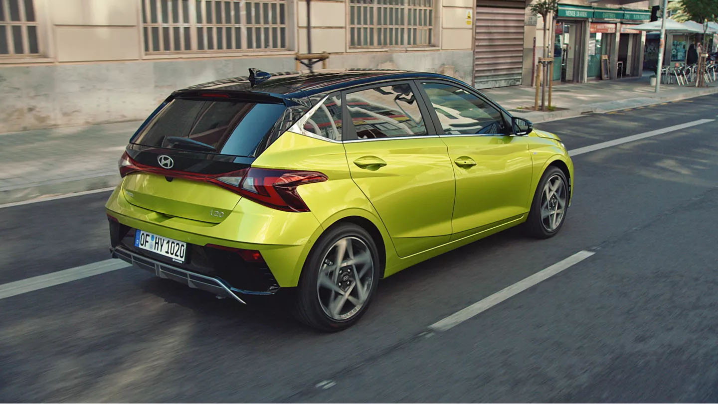 Az új i20 sportos és elegáns, megjelenése lenyűgöző: dinamikus sziluettje és átrajzolt külső formaterve a figyelem középpontjába helyezi.